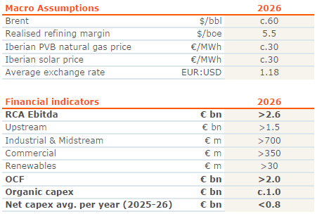 Galp is providing key operating and financial guidance for the 2026 period, in accordance with its updated views and macro assumptions: