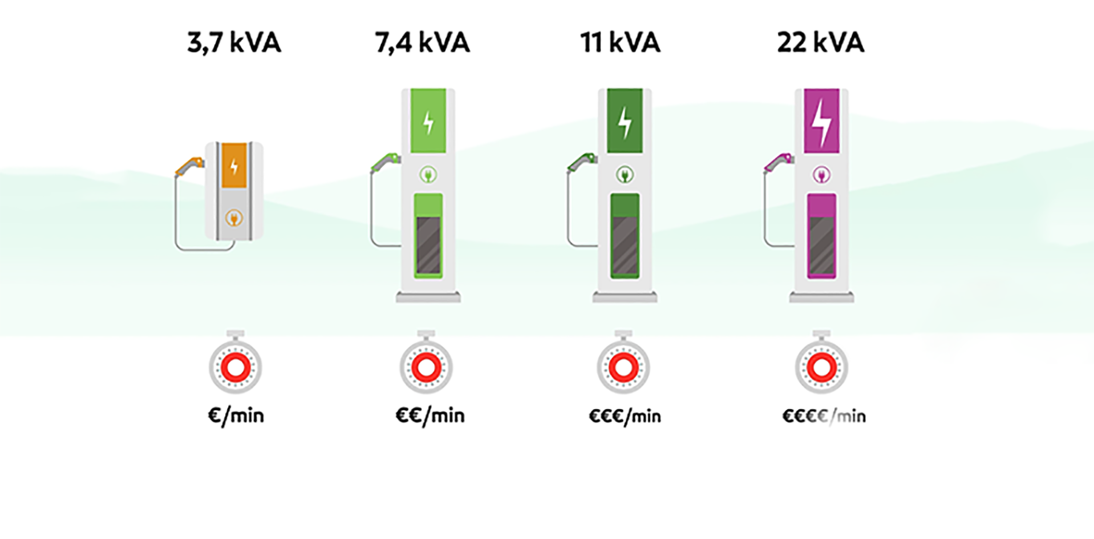 Isto porque a tarifa de utilização do ponto de carregamento (OPC) é muitas vezes cobrada em função do tempo de carregamento (€/min). Por isso, é importante escolher o carregador que melhor se adapta às características do próprio carro.